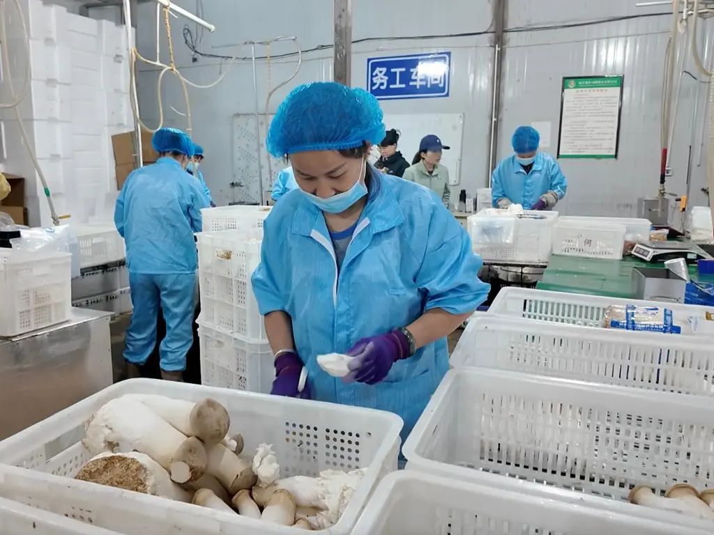 蓬勃發(fā)展的食用菌產(chǎn)業(yè)還催生出助農(nóng)增收的聯(lián)農(nóng)帶農(nóng)機(jī)制。陸良爨鄉(xiāng)綠圓菇業(yè)有限公司通過流轉(zhuǎn)土地,帶動(dòng)周邊600多戶農(nóng)戶種植食用菌,每戶年均增收1.5萬(wàn)元?!懊總€(gè)月打包分揀食用菌能有4000多元的收入,我很滿意?!奔易」S附近的農(nóng)戶朱麗仙說,除了土地租金,周圍農(nóng)戶還可以到車間里務(wù)工,實(shí)現(xiàn)家門口就業(yè)。