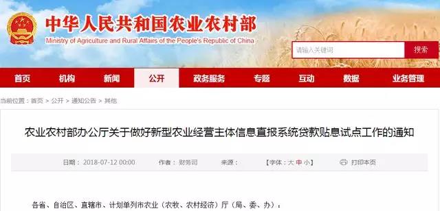 為加快推進新型農業(yè)經營主體信息直報系統(tǒng)(以下簡稱直報系統(tǒng))應用實施,幫助緩解新型農業(yè)經營主體貸款難、貸款貴問題,我部將以直報系統(tǒng)為載體開展貸款貼息試點。現(xiàn)將有關事宜通知如下。