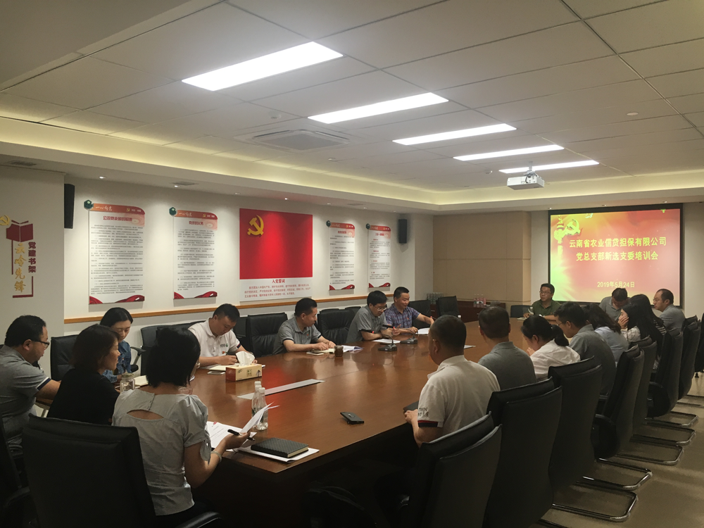 5月24日,云南省農(nóng)業(yè)信貸擔(dān)保有限公司黨總支部召開新選支部委員培訓(xùn)會,公司黨總支部書記、董事長郭影同志主持會議,公司新選支部委員參加了培訓(xùn)。