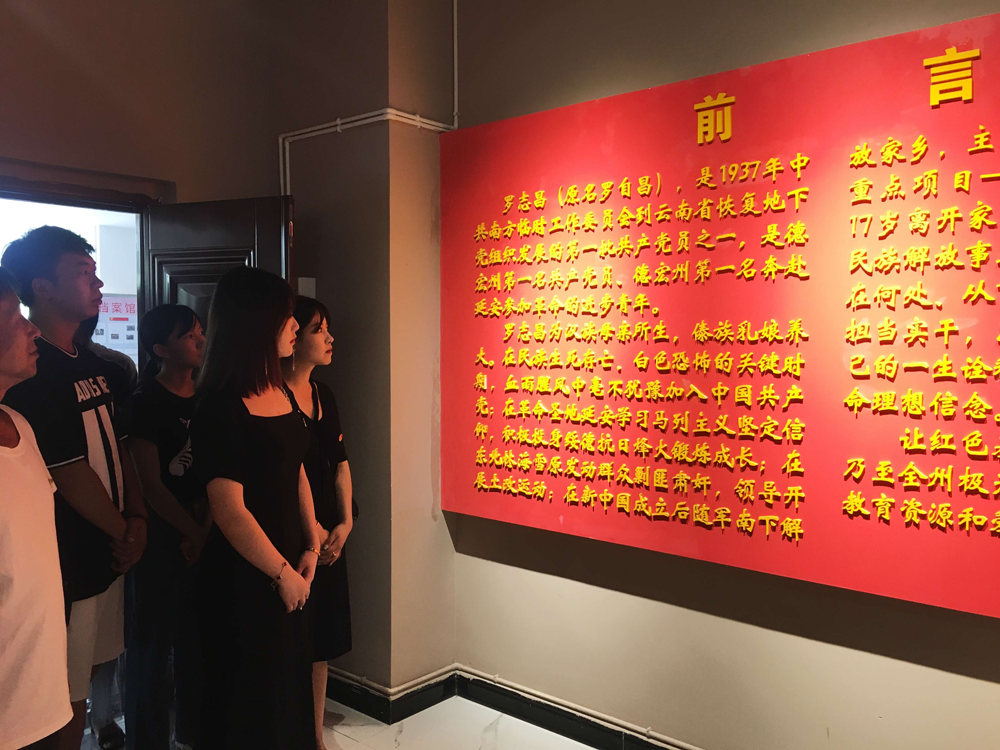 活動(dòng)中,全體黨員干部在胡幫露同志的帶領(lǐng)下重溫入黨誓詞。在講解員的引導(dǎo)和解說下,參觀學(xué)習(xí)了羅志昌革命史實(shí)陳列室,了解了黨在德宏州的發(fā)展歷史、并從“和諧家庭,少年立志”、“求學(xué)上進(jìn),秘密入黨”、“延安深造、綏德成長(zhǎng)”、“云南解放回鄉(xiāng)建設(shè)”四方面學(xué)習(xí)了羅志昌同志一生為黨和人民解放事業(yè)奮斗的事跡。