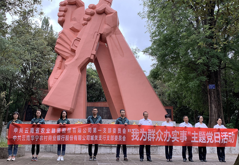 為進(jìn)一步深入開(kāi)展黨史學(xué)習(xí)教育,傳承紅色基因、踐行初心使命,發(fā)揮基層黨支部戰(zhàn)斗堡壘作用。2021年8月20日,云南省農(nóng)業(yè)融資擔(dān)保有限公司第一支部委員會(huì)玉溪辦事處與云南華寧農(nóng)村商業(yè)銀行股份有限公司城關(guān)支行支部委員會(huì)按照“學(xué)黨史、悟思想、辦實(shí)事、開(kāi)新局”的要求聯(lián)合開(kāi)展“我為群眾辦實(shí)事”主題黨日活動(dòng)。